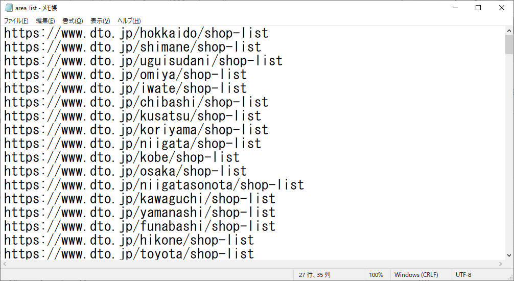listフォルダに、area_list.txtができます。メモ帳などで開いてみて、以下のようにURLがリストされていたらOKです。
