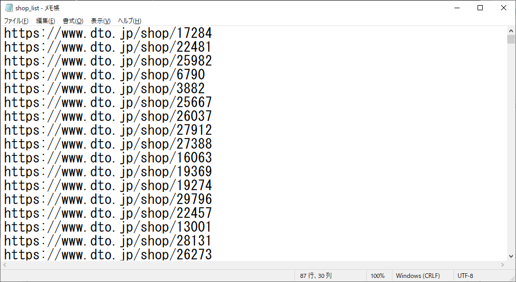 ステップ1と同じようにメモ帳などで開いてみて、以下のようにURLの一覧が書かれていれば成功です。